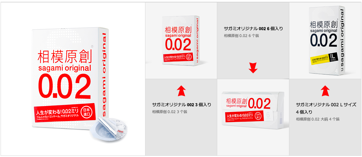 sagami original 0.02 (相模原創(chuàng)0.02系列), 是日本相模橡膠工業(yè)株式會(huì)社于1998年推出首次創(chuàng)新發(fā)明并向日本市場的一種以聚氨基甲酸酯 (高分子材料)為原料制成的非乳膠安全套, 厚度僅0.02mm, 是傳統(tǒng)的橡膠產(chǎn)品“厚度一半,強(qiáng)度三倍”, 并且擁有高導(dǎo)熱性能,讓產(chǎn)品使用體驗(yàn)更加美妙!
